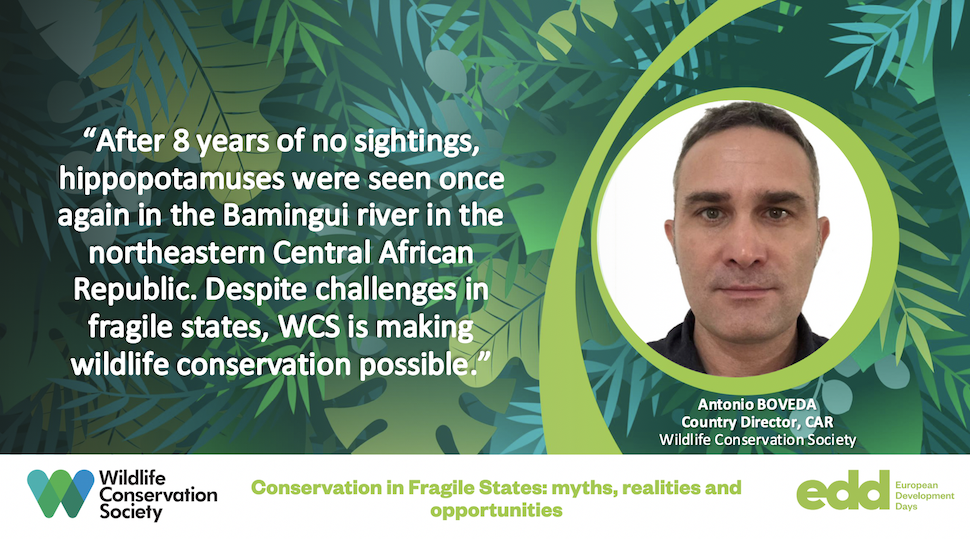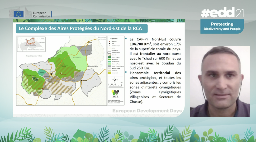 Mr. Antonio Bóveda, Country Director - Central African Republic at WCS, discussed how to protect wildlife in fragile states while increasing resilience in the local population. For instance, WCS is shaping a conservation-friendly transhumance approach, by creating collaborative links between herders, who use the authorized transit routes, and meat sellers in local markets. This pilot project aims to meet protein needs at accessible prices, benefiting both people and wildlife.