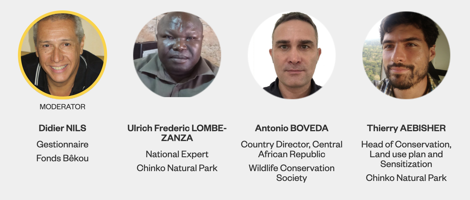 In this session held on 16th June 2021 and moderated by Mr. Didier Nils, Manager of the Bêkou Trust Fund, speakers discussed how to balance and integrate security/development/conservation approaches. They addressed sensitive questions such as militarisation of eco-guards, recruitment in/outside local communities, difficulty of developing income-generating activities and lack of enforcement of regulations. Speakers also presented their innovative solutions: from park management models, to cattle herders’ trainings to monitor and educate transhumant herders, to valorization of natural resources conservation and territorial planning.