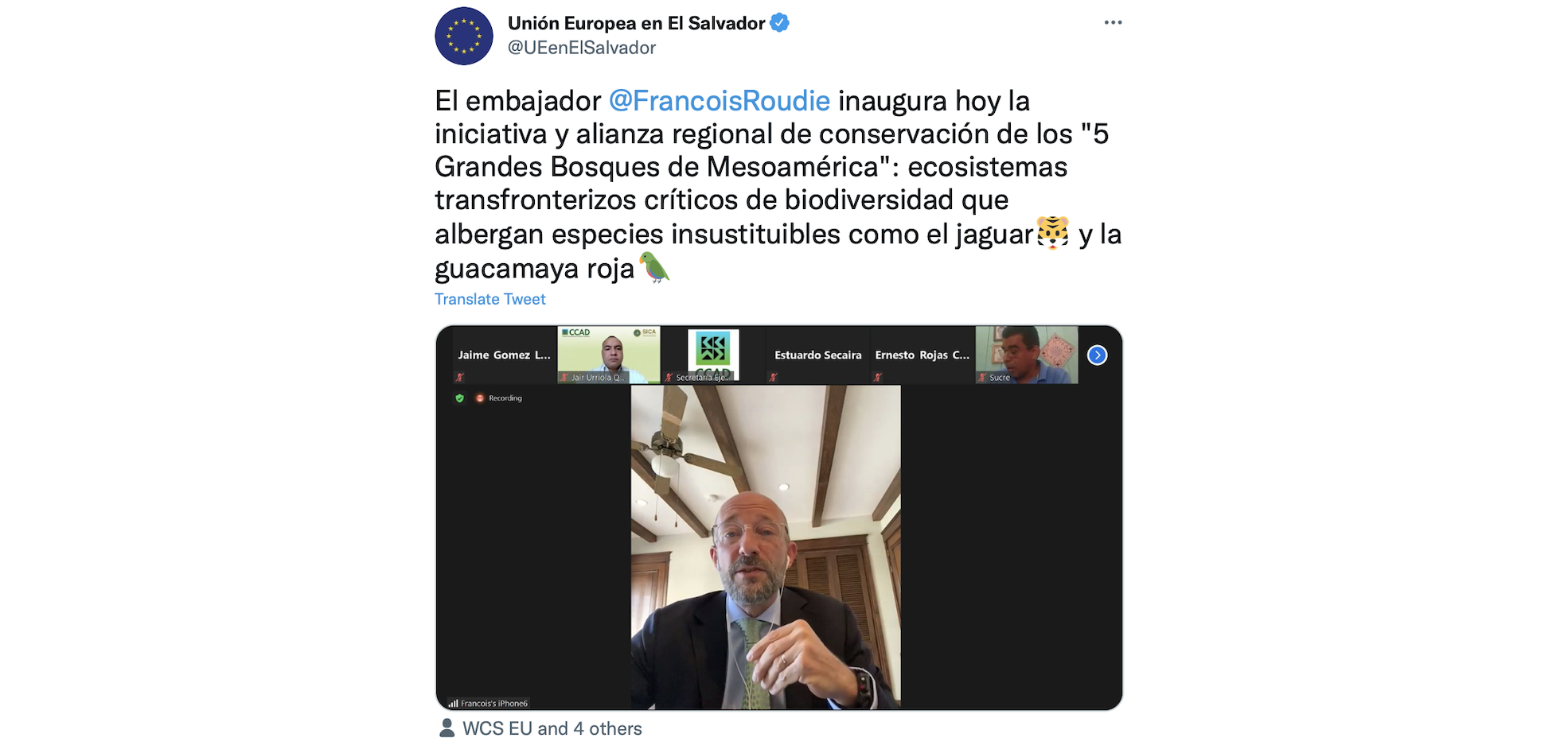 “As part of the European Green Deal, the EU seeks to support its partners to safeguard their natural ecosystems, to tackle climate change and to halt biodiversity loss. Our contribution to the Five Great Forests of Mesoamerica Initiative is an expression of that commitment and it reaffirms our conviction that nature is essential in securing prosperity and combating poverty, hunger and inequalities. We believe it's an innovative regional approach that could serve as a model for other important forested regions,” said François Roudié, Ambassador of the European Union to El Salvador and to the Central American Integration System (SICA).