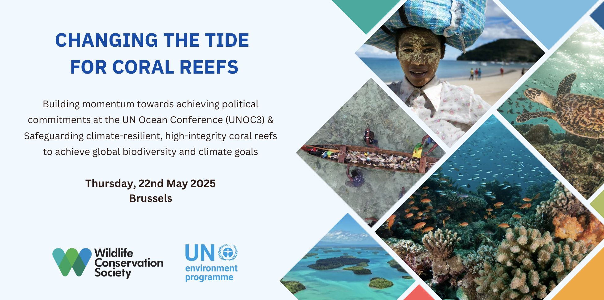 In the run-up to the third United Nations Ocean Conference (UNOC3) taking place in Nice in June, the Wildlife Conservation Society EU Office (WCS EU) and UN Environment Programme (UNEP) hosted a high-level event on 22nd May in Brussels to build momentum towards achieving political commitments at UNOC3 that contribute to safeguarding climate-resilient, high-integrity coral reefs for achieving global biodiversity, climate, and sustainable development goals.