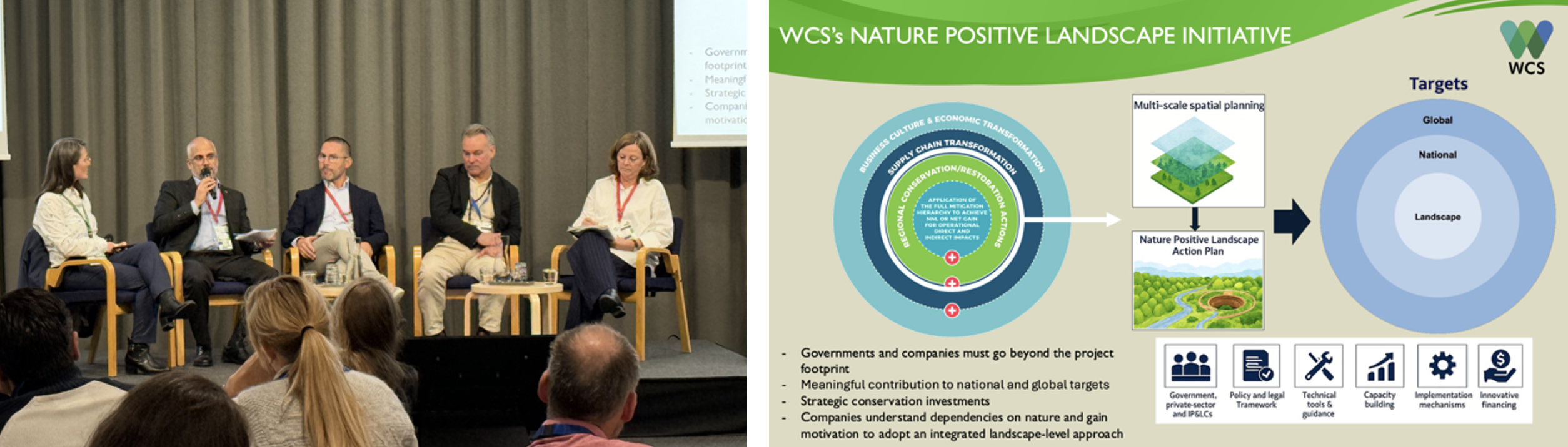 Left: Hugo Costa, Director of Business & Biodiversity Impact at WCS presenting at EBNS 2025 in Helsinki