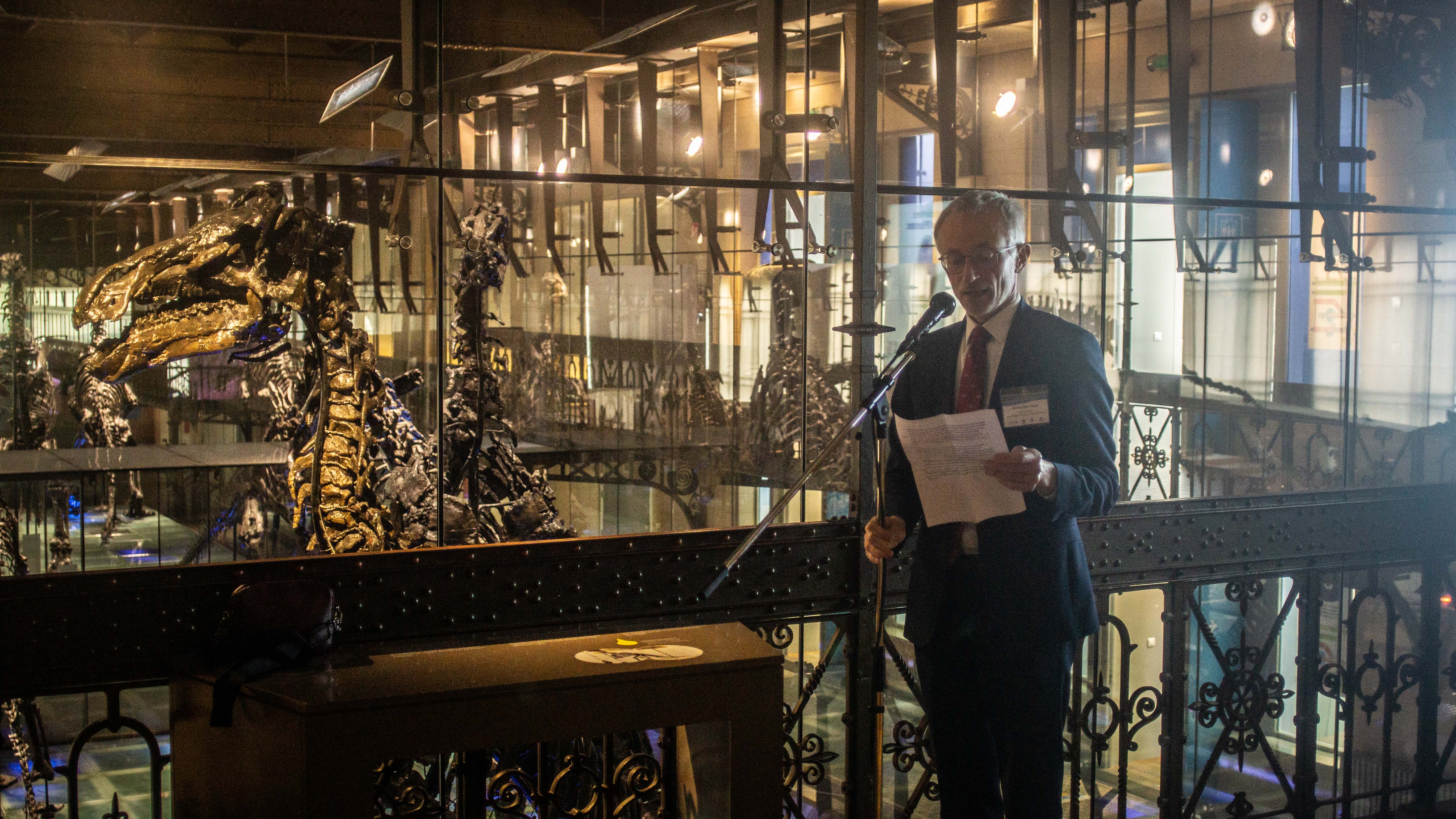 Dr Michel Van Camp, Director-General of the Royal Belgian Institute of Natural Science, welcomed attendees to the Museum. He opened with a reminder that 33 years ago, Rio de Janeiro gave birth to the three conventions we know today — the CBD, UNFCCC, and UNCCD — each rooted in scientific evidence, and that it is precisely this legacy of evidence-based ambition that continues to bring us together. He described the work of the Royal Belgian Institute of Natural Sciences, harnessing science and environmental observation and transforming it into the indicators and patterns that help policymakers understand where we stand and how far we still have to go. This commitment to bridging science and policy, he noted, is further reflected in the Institute's role hosting the Belgian Biodiversity Platform and its involvement in the Belgian Climate Centre and the Belgian Centre for Climate Risk Assessment, interconnected efforts that embody the understanding that biodiversity and climate are ultimately one story. He concluded by welcoming representatives from Armenia, Mongolia, Türkiye, and the European Union, expressing hope that the dialogue underway would contribute to a unified call to action reaching every party still drafting its National Report.