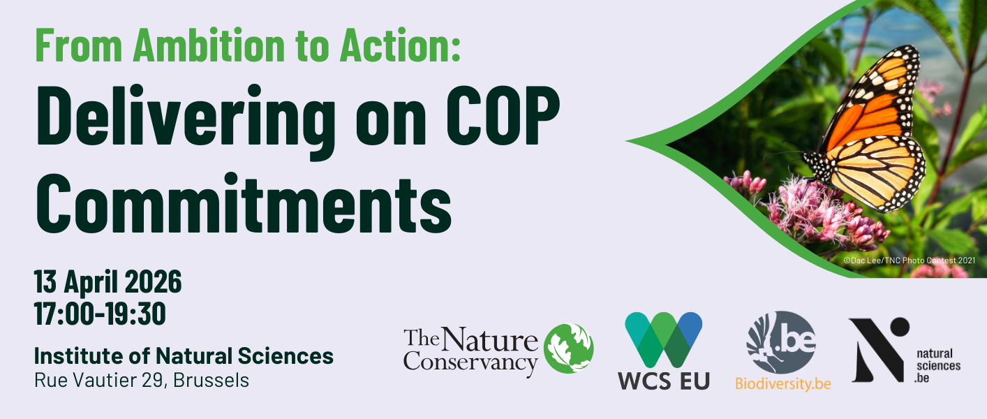 On Monday, 13 April 2026, WCS EU co-hosted a high-level reception with The Nature Conservancy in Europe and the Belgian Biodiversity Platform to discuss the transition from global ambition to concrete implementation ahead of three major Rio Convention COPs this year: CBD COP17, Climate COP31, and UNCCD COP17.